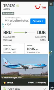 Après avoir sélectionné un avion sur la carte ou saisi un numéro de vol dans la barre de recherche, une fenêtre apparaît sur le côté gauche de l’écran avec des informations supplémentaires telles que le lieu de départ et d’arrivée, l’heure de départ et d’arrivée ainsi que l’altitude du vol, la distance déjà parcourue, etc.